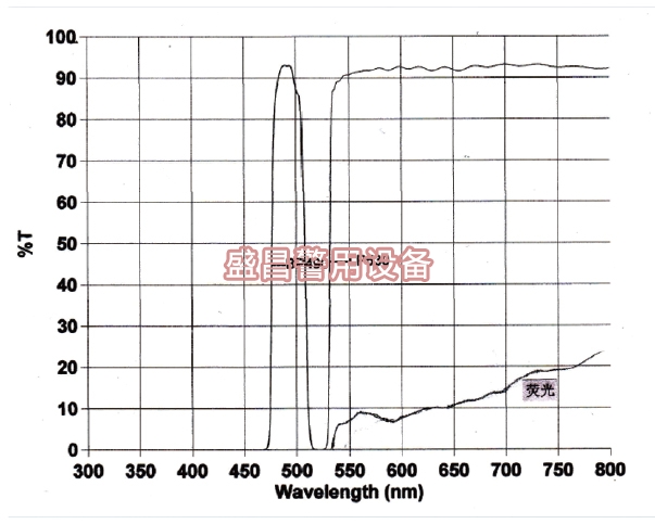 2、 依據匹配系數D小于40nm的原則,對CSS、415nm、450nm、470nm、490nm、510nm、530nm、555nm等八個波段都配備專用的長波通濾光片和長波通眼鏡。使每一個波段都能發揮出最強的激發熒光的能力。