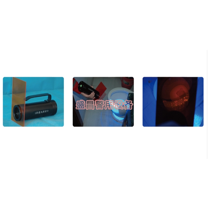 BTSS-Ⅳ型LED藍(lán)光搜索燈輸出均勻度很高的藍(lán)光,在搜索燈的前端安裝了橙色玻璃。在黑暗的環(huán)境下,用LED藍(lán)光搜索燈在現(xiàn)場搜索物證,透過橙色玻璃觀察物證,可直接觀察精斑、尿液、唾液、陰道分泌物、皮屑、炸藥、洗滌劑、纖維等物證的熒光。用藍(lán)光搜索燈照射熒光粉末顯現(xiàn)的指紋,透過橙色玻璃觀察可以觀察到指紋的熒光。
